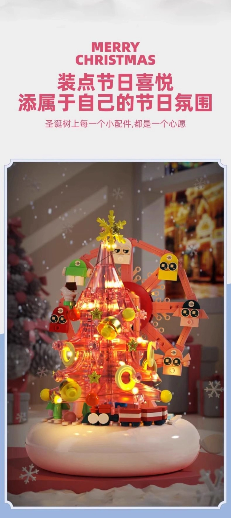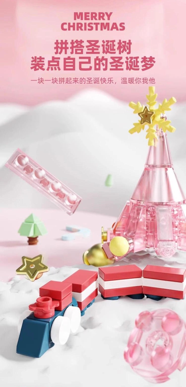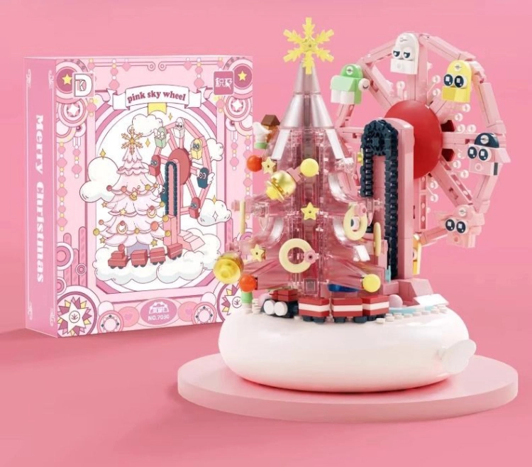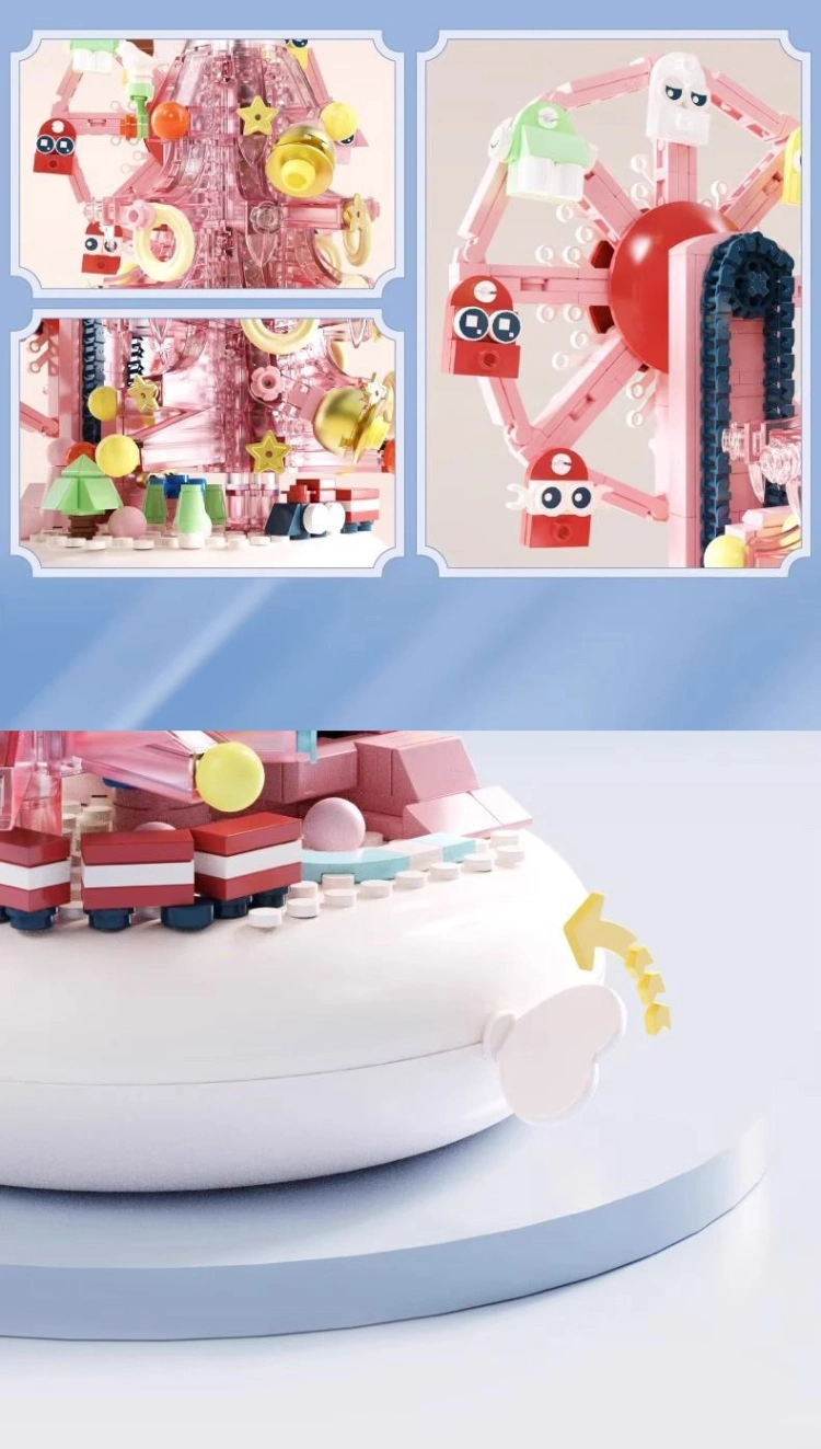 中国积木创意圣诞树摩天轮音乐盒儿童益智拼装玩具节日礼物男女孩
